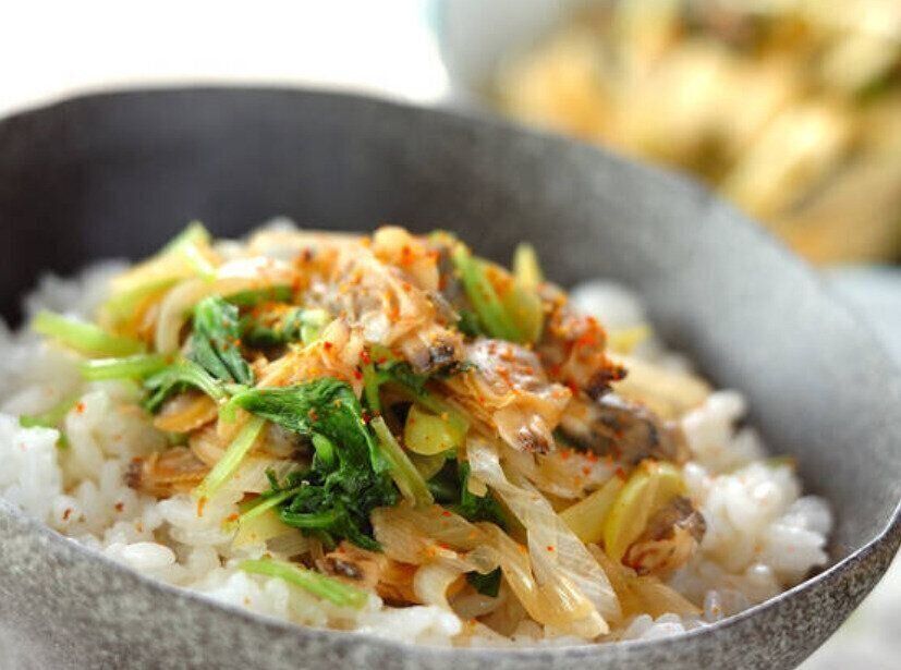 和食のメインにぴったりのあさり丼。あさりの旨みが詰まった合わせだしを、汁ごとご飯にかけていただきます!お好みで七味唐辛子を振って、香りをプラスするのもよいですね。