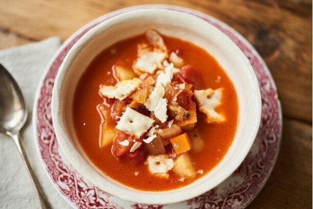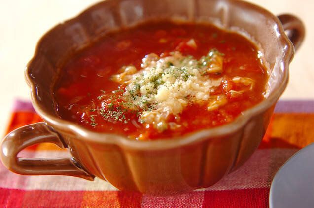 「アサリのトマトスープ」は、たっぷりのトマトを使ったトマトスープにあさりを加えた一品です。あさりを加えることで、味に深みがでる仕上がりに。朝ごはんや、メインとしても食べられるスープです。