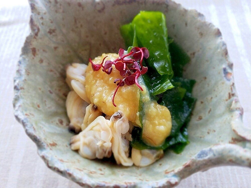 簡単!生わかめとアサリむき身の酢味噌がけ