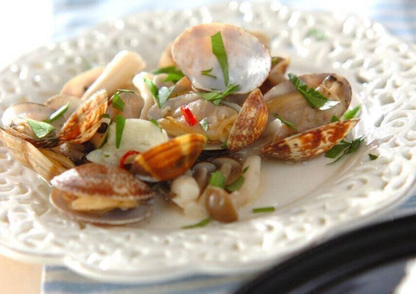 あさりの代表的な料理の酒蒸しを、日本酒の代わりに白ワインで仕上げたアレンジレシピです。イタリアン風に仕上がり、いつもとは一味違う酒蒸しを楽しむことができますよ。