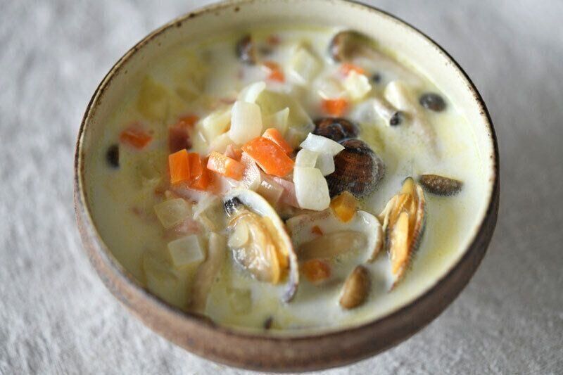 「野菜たっぷりクラムチャウダー」は、あさりに負けないほどたっぷりの野菜を使ってつくるレシピです。かぶやブロッコリー、玉ねぎなどの野菜がクラムチャウダーにすることで甘さも増しておいしさUP。野菜とあさりの組み合わせも絶品です。