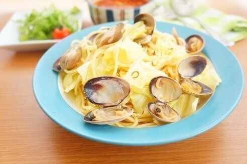 ランチにぴったりな、アサリとキャベツのワンポットパスタのレシピ。アサリの旨みがパスタに染みて、絶品です。パスタは別ゆで不要で、フライパンひとつでつくれるのがうれしいですね。アサリから塩分が出るので、味つけは控えめでOK。