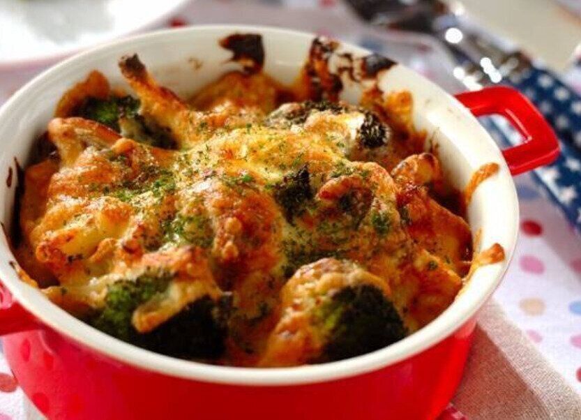 あさり、ブロッコリー、マカロニ、玉ねぎなど、具だくさんのグラタンです!あさりの旨みがホワイトソースに加わることで、コク深い味わいに仕上がります。洋食のメインにぴったりですね。