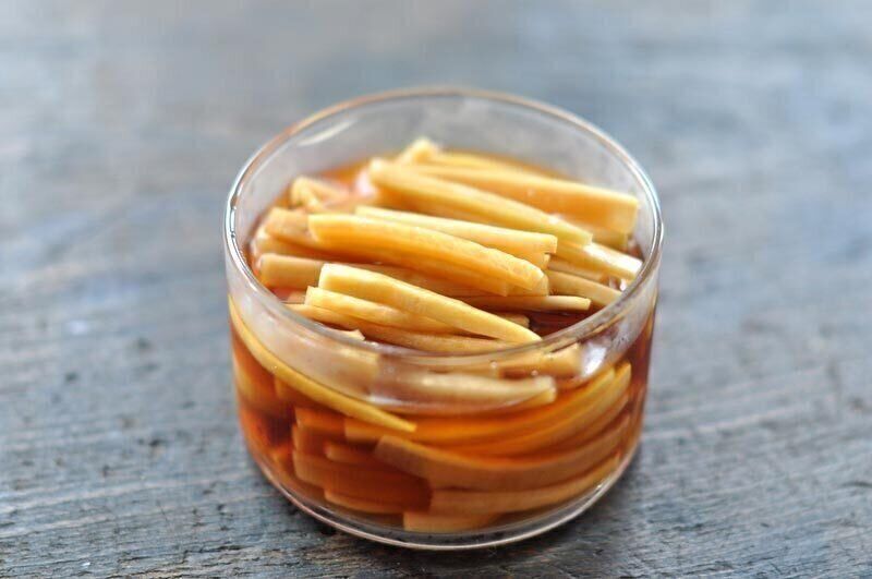 煮物などを調理する際に出る大根やかぶの皮も、捨てずにムダなく使っちゃいましょう。味つけはポン酢だけで簡単!冷蔵で1週間ほど保存がきくので、常備菜として多めにつくっておくと◎。