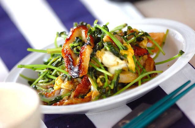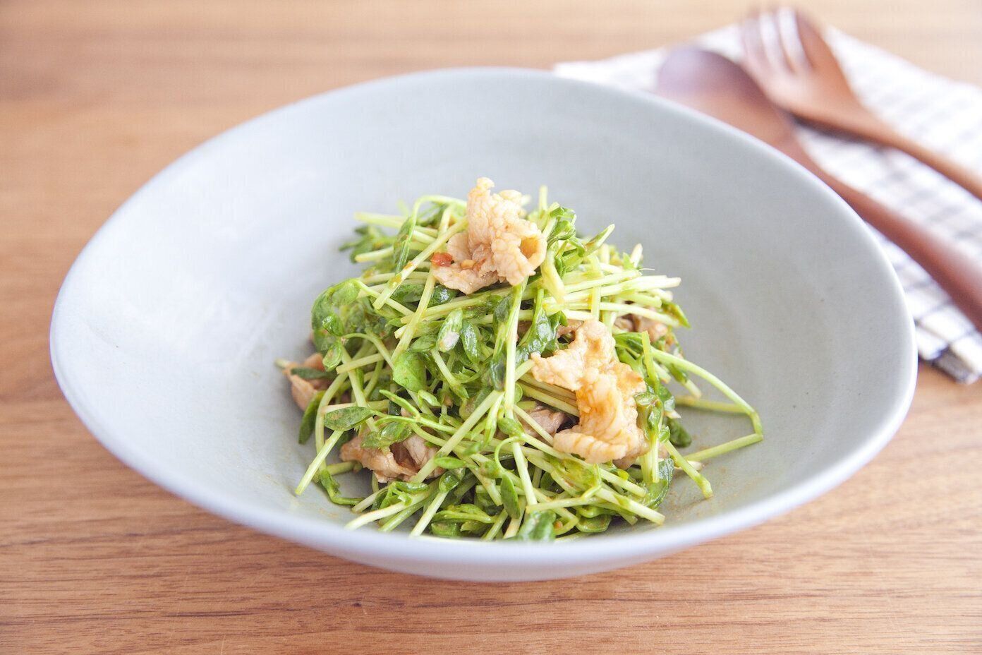 豆苗と豚肉の、相性ばっちりの組み合わせを楽しめる一品。オイスターソースの風味でご飯もモリモリ食べられそうです。また、炒めることで豆苗がしんなりとして、野菜をたっぷり食べられそうですね。