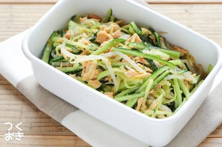 家計にやさしいもやしをたっぷりと使った、きゅうりともやしのツナごま和え。きゅうりともやしのシャキシャキ感と、さっぱりとしたお酢の後味がおいしい一品です。ツナ缶を油ごと使うことで、うま味とコクもアップします。