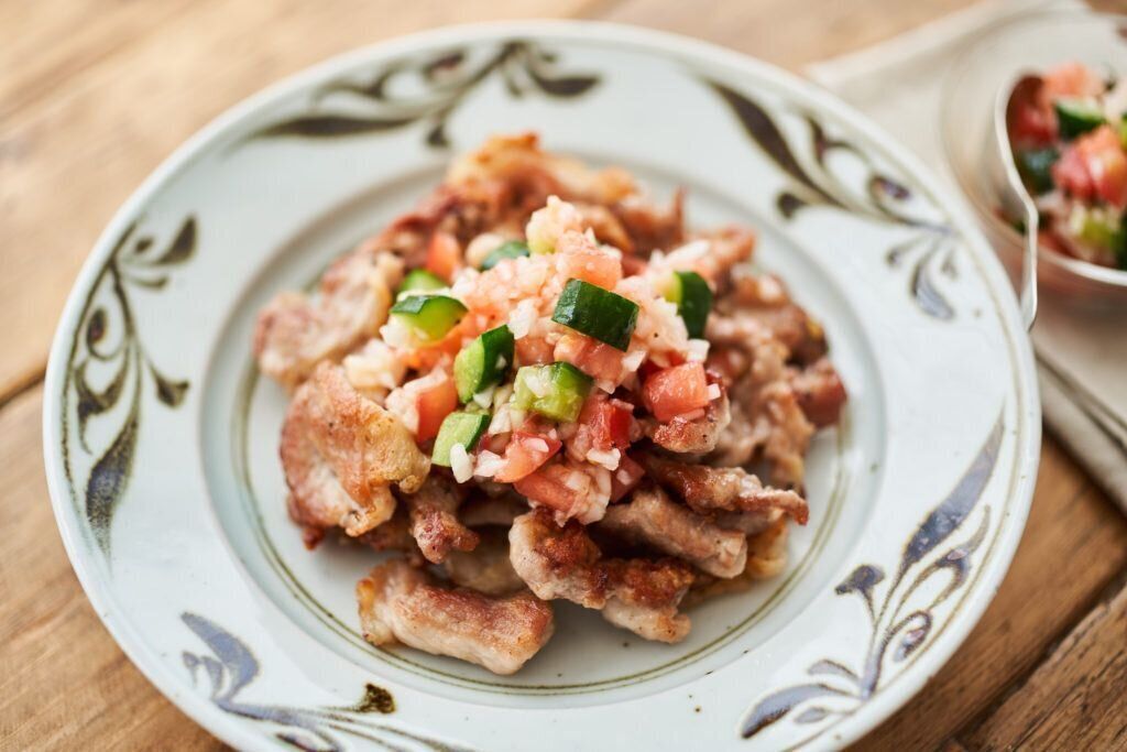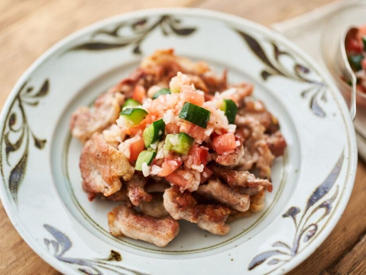 熱々に炒めた豚こま肉と生の豆苗を合わせた、彩りもきれいなあえものレシピ。ジューシーな豚こま肉と、豆苗のシャキシャキ食感の組み合わせが絶妙な一品です。トウバンジャンをつかったピリ辛風味で、箸が進みますよ。