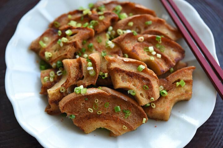 脇役食材の車ふを食べ応えのあるメインおかずに仕上げた、車ふの照り焼き。しょうゆベースの甘辛いタレが食欲を刺激し、ご飯が進みます。仕上げに散らした刻みねぎや一味唐辛子が、風味にいいアクセントを与えてくれます。