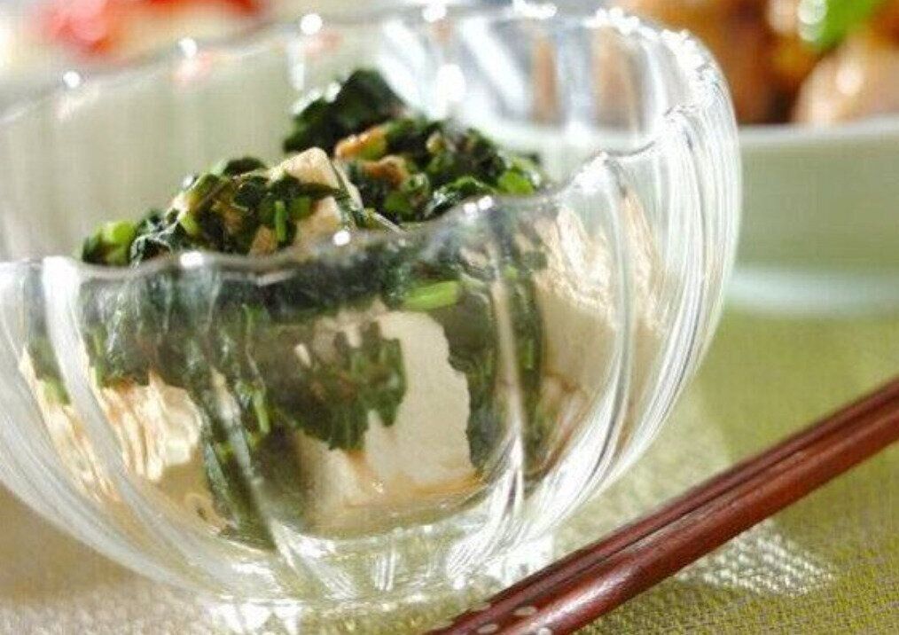 ねばりのあるモロヘイヤは豆腐との相性も抜群です。豆腐はしっかり水気を切ることで、モロヘイヤと和えても水っぽくならず、おいしくいただけます。
