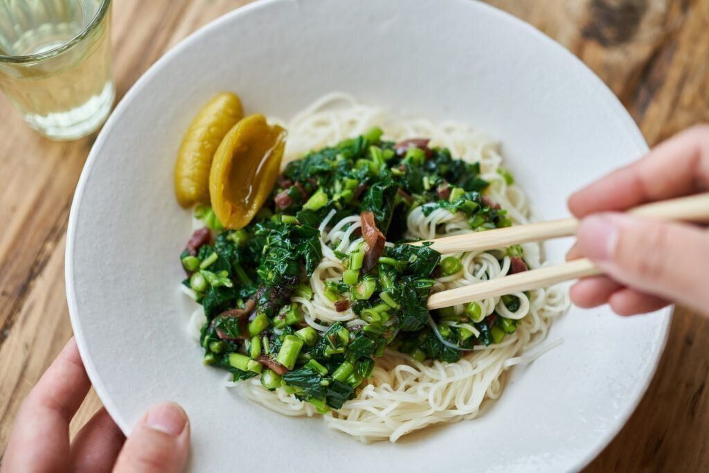 モロヘイヤのねばりのある食感を活かして、ごはんや麺にたっぷり乗せると、喉越しがよく食欲がない時でもツルッと食べられます。旨みや香りのある食材を合わせたり、お好みで薬味をのせたりアレンジもしやすいですね。