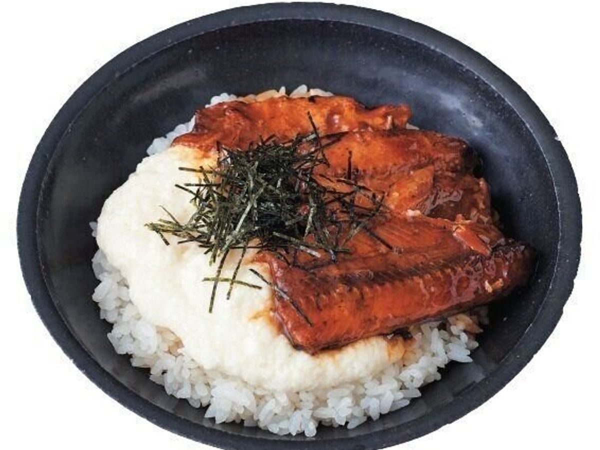 (2)器に、温かいご飯をどんぶり1杯分ずつ盛り、すりおろしたやまといも100g、(1)をのせて刻みのり適量を散らす。