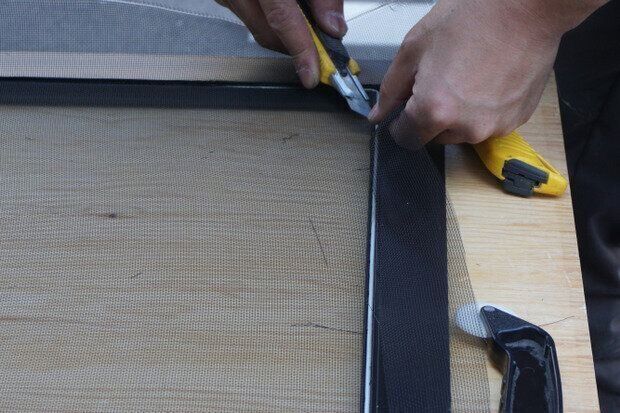 3.新しい網戸シートを枠に合わせてカットする