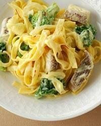 クリームソースが絡みやすい幅広のフェットチーネというパスタを少しやわらかめにゆでて和えるのがポイントです。