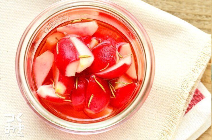 ラディッシュのおすすめレシピ1:箸休めやお弁当おかずに。ラディッシュの甘酢漬け