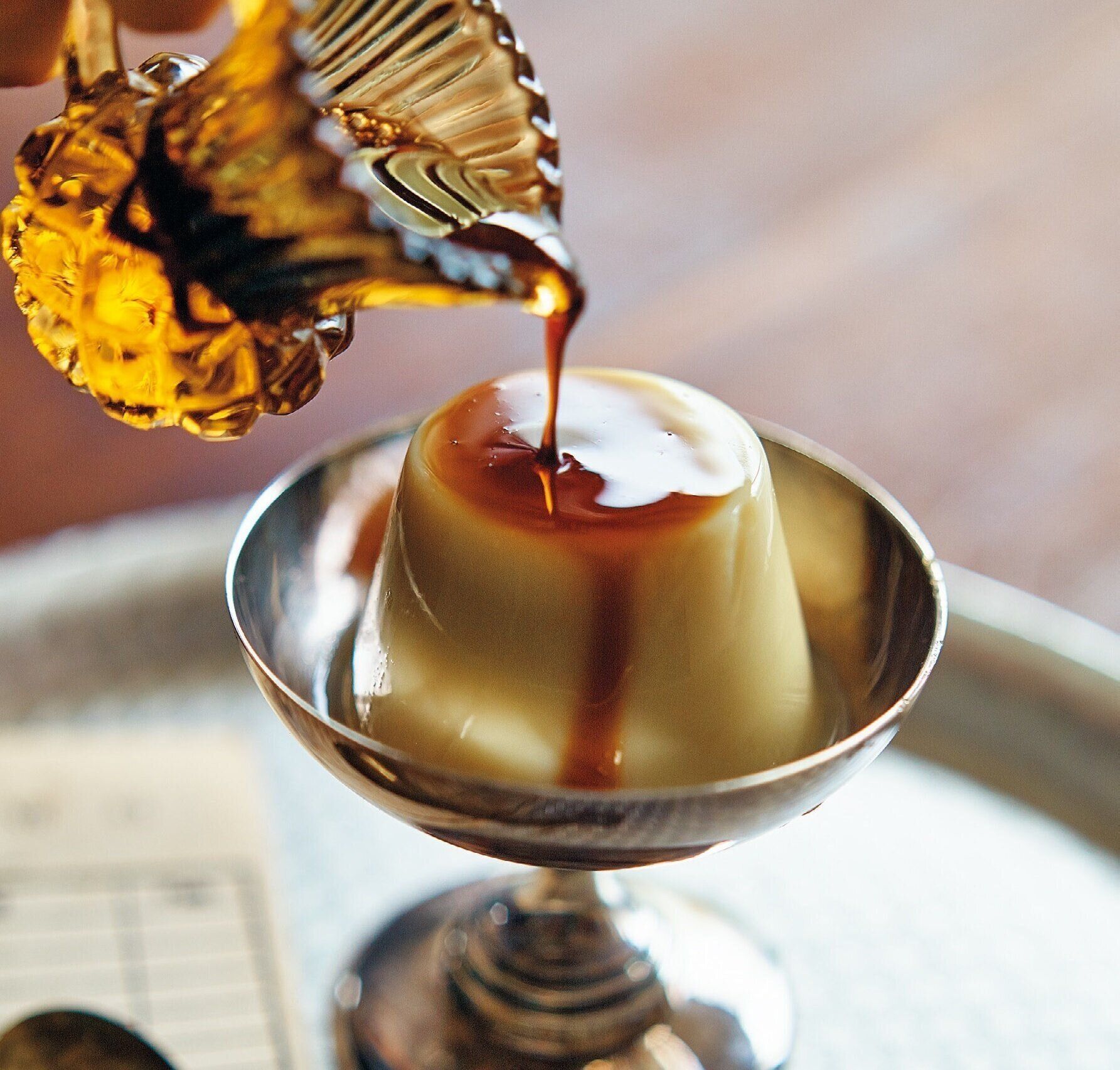 (4)水でぬらしたプリン型に流し入れ、粗熱が取れたら冷蔵室で冷やす。型からはずして器に盛り、黒みつをかける。