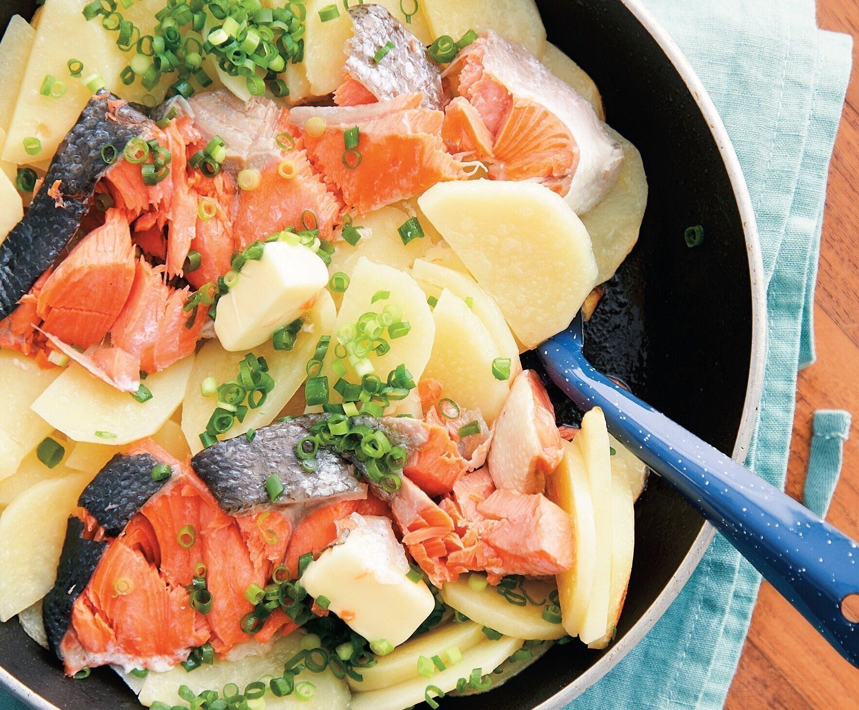 『サンキュ!』2020年10月号の「別冊:節約したい日の夕ご飯どうする?」より塩鮭ポテトのフライパン蒸しをご紹介します。