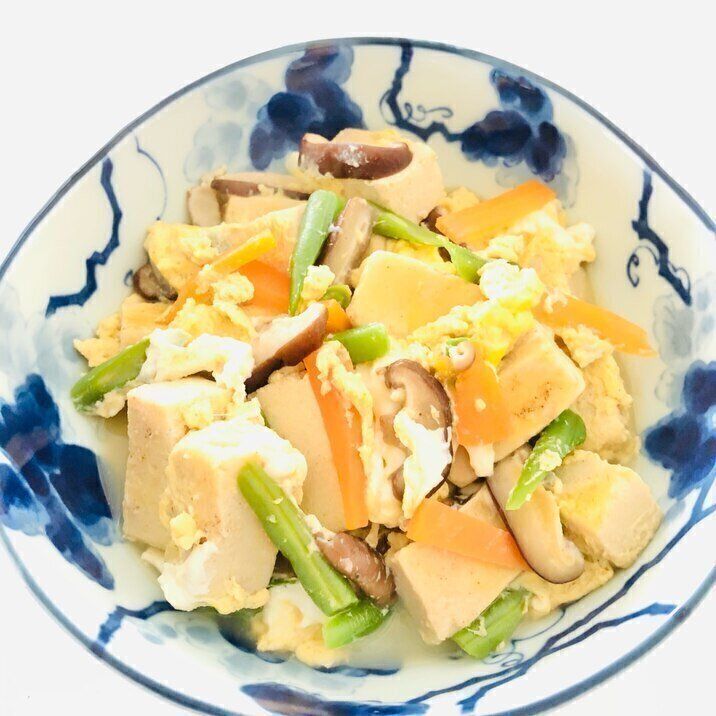 高野豆腐人参インゲン卵とじ