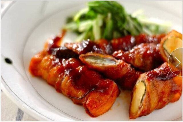 がっつり食べたいけどカロリーが気になるという人におすすめなのが、こちらのレシピです。高野豆腐となすを豚ばら肉で巻くことで、少ないお肉の量でも食べ応えがアップします。豚ばら肉の旨味が染み込んだ高野豆腐とナスは絶品で、濃いめのピリ辛な味つけは白米が進むこと間違いなしです。