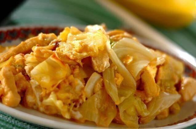 高野豆腐とキャベツの卵炒め