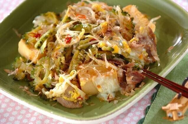 ゴーヤ特有の苦みが苦手な人も食べやすいように工夫された、ゴーヤチャンプルーのレシピです。具材に高野豆腐をプラスすることで、たんぱく質もしっかり摂取でき、食べ応えもアップします。