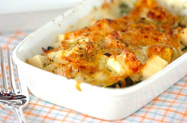 グラタンに高野豆腐を組み合わせた和風レシピ。高野豆腐にホワイトソースをたっぷり吸わせているので、噛むと口いっぱいに旨味が広がります。ホワイトソースと相性のいい、白みそを入れることでコクがアップ!