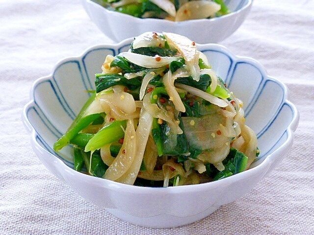 ツルムラサキと玉ねぎ、2種類の食感を楽しめるあえ物レシピです。甘めのしょうゆだれに、粒マスタードのアクセントをプラス。ツルムラサキ好きにはたまらない一品ですね。