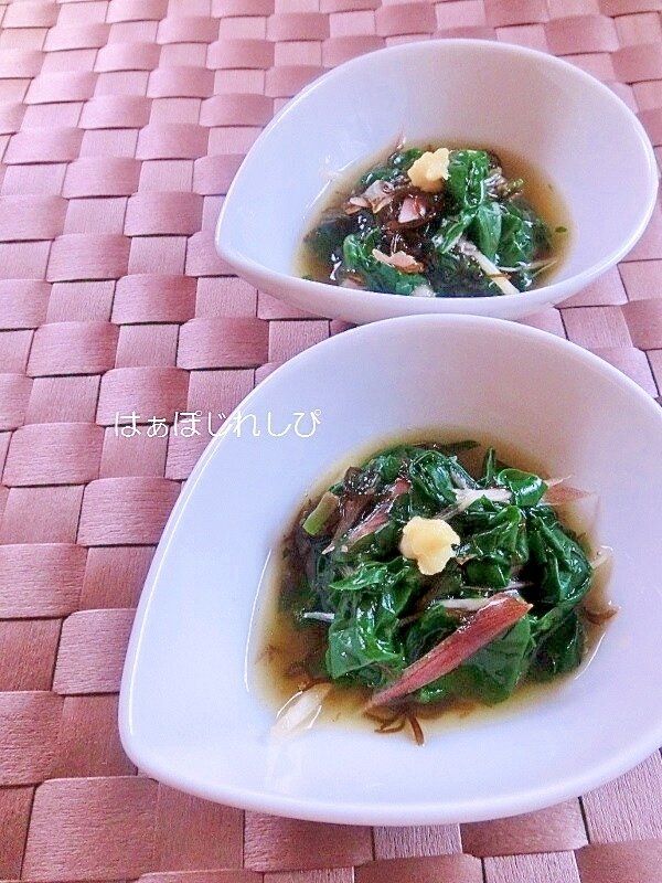 ツルムラサキにもずく酢を合わせた、酸味とネバネバパワーで元気が出そうな一品です。もずく酢に味がついているので味つけも簡単!最後にしょうがやみょうがを添えると、見た目も上品な副菜になりますね。