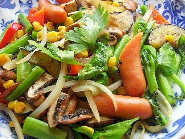 やや減塩♡つるむらさき他の野菜炒め♪(ウインナー)