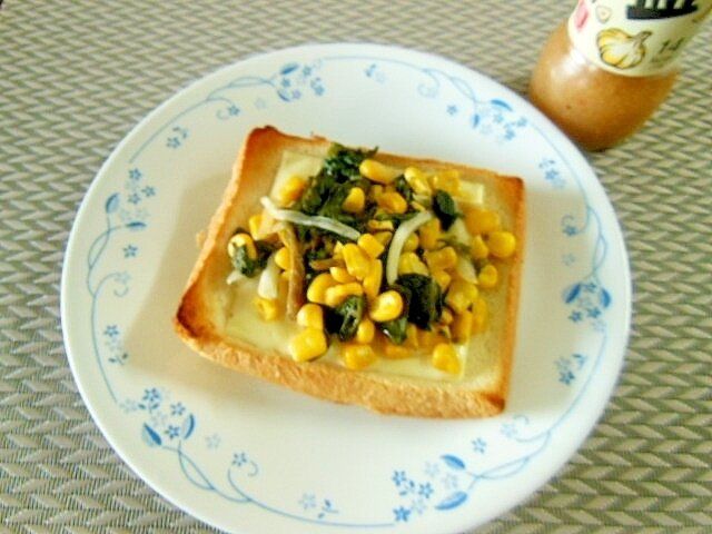 【うま塩】ツルムラサキとコーンのうま塩味トースト♪