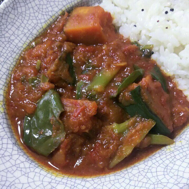 実はカレーと好相性なツルムラサキ。独特の香りもスパイスで消すことができますよ。具材がちょっぴり変わっているので、いつもとは違うカレーを味わいたいときにおすすめ!
