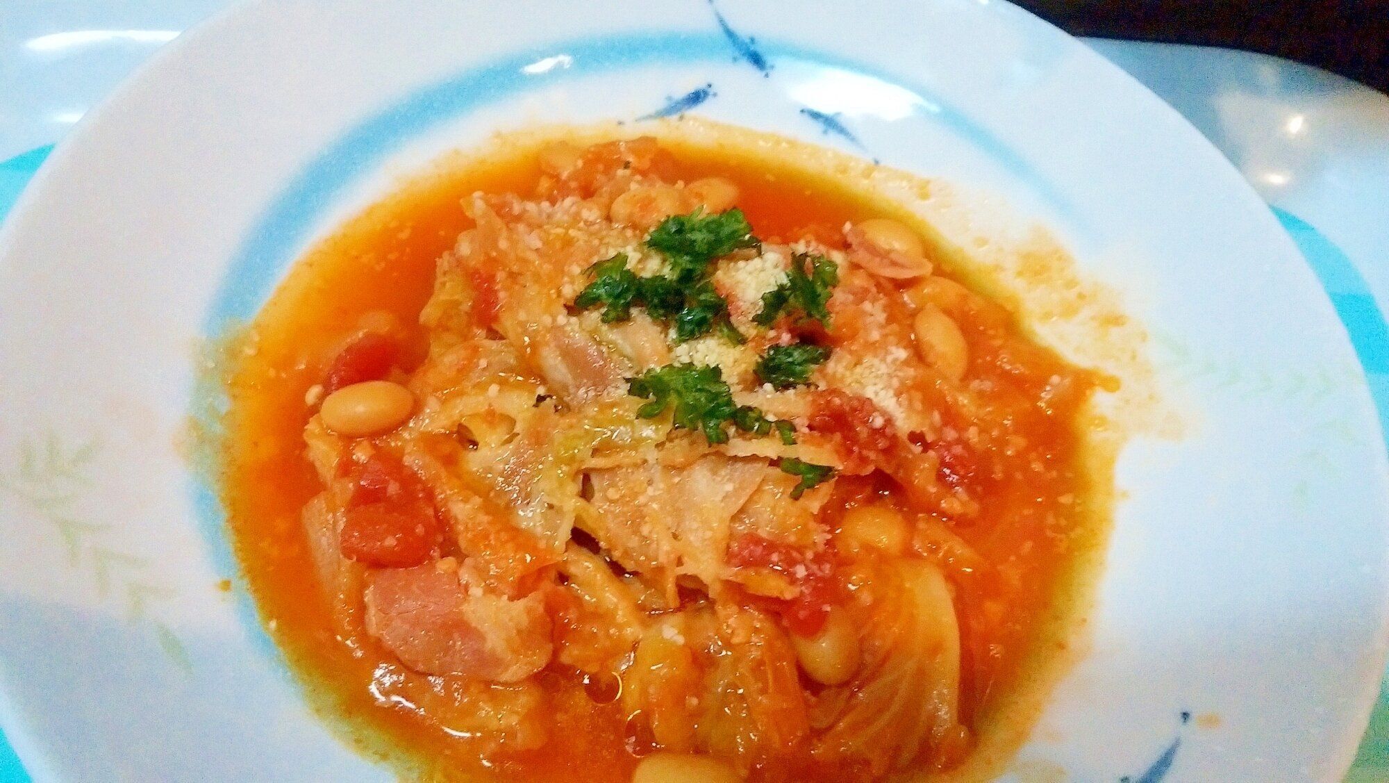 キャベツや玉ねぎ、セロリなどなど、野菜をたっぷり味わえるトロトロ野菜のスープ煮です。イタリアンパセリを散らして華やかに。洋食の副菜におすすめです!遅い時間にお腹が空いたときにも、気兼ねなく味わえそうですね。