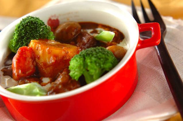 手間や時間のかかるビーフシチューも圧力鍋を使えば短時間で完成します。大きめに野菜をカットして入れることで食べ応えも抜群で大満足の一品です。