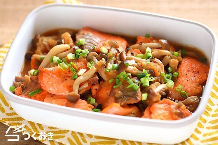 白だしがきいた南蛮酢にたっぷり野菜と鮭を和えた一品です。野菜を素揚げにすることで、旨みが凝縮し色鮮やかになります。お酢は食べ物をいたみにくくする効果があるので、汁気をしっかり切ってお弁当のおかずとしても活用できます。