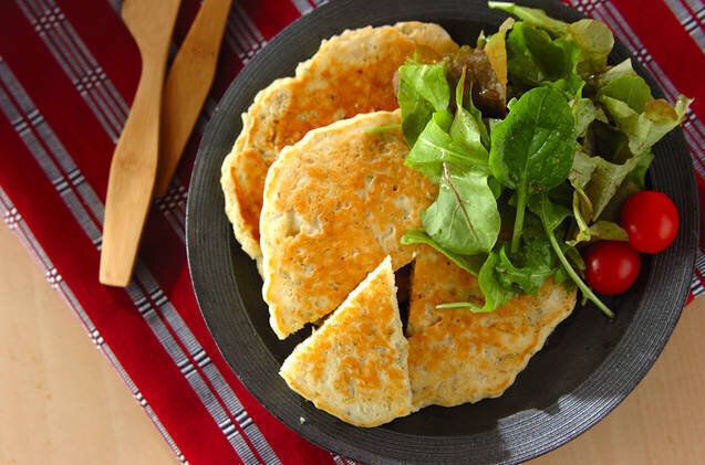生地に白だしをプラスした、甘さ控えめのおかずパンケーキ。 白ごまやチリメンジャコなど、さまざまな食感と風味のハーモニーも楽しめる一品です。桜エビを入れても、おいしくつくれますよ。
