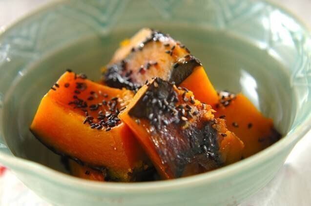 定番のかぼちゃ煮を、はちみつと焦がしバターで味つけした和食レシピ。仕上げにふりかけた黒ごまとも相性バツグンです。やみつきになるおいしさで、ごはんがどんどん進みますよ。