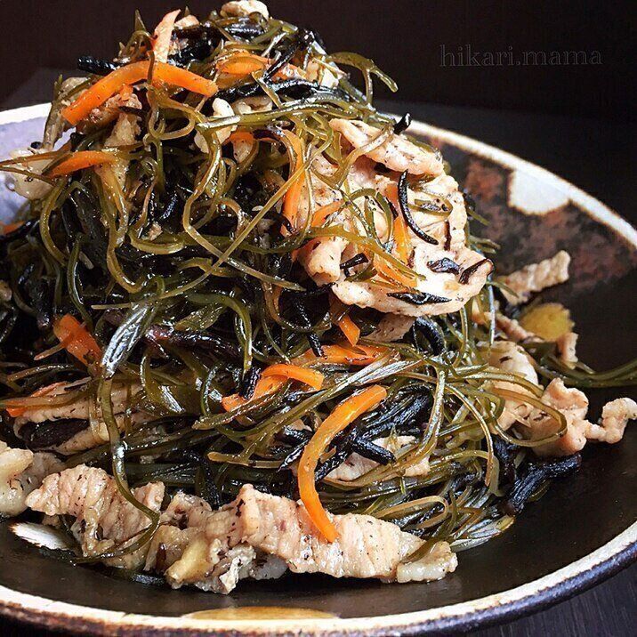 豚肉と昆布、ひじきの具沢山炒め煮♪簡単で栄養満点♡
