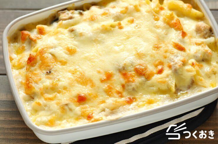 寒い時季には欠かせないマカロニグラタン。小麦粉を加えるときに、少しずつなじませるのがポイントです。ホワイトソースにスライスしたマッシュルームを入れ、たっぷりのチーズを散らして、オーブンでこんがり焼いたら完成。