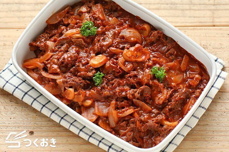 玉ねぎやマッシュルームの入った手作りハヤシライスのレシピです。身近な材料で簡単につくれて、ご飯がすすむ一品。牛肉に薄力粉をまぶして炒めるとお肉がやわらかくなるのでおすすめです。