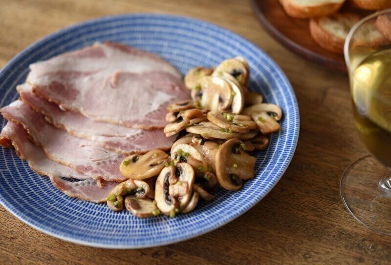 ベーコンとブラウンマッシュルームをオリーブオイルで炒めたシンプル料理。にんにくとコショウが効いていて、食べ応え抜群のメインおかずです。ガツンとした味でおつまみにもぴったり。