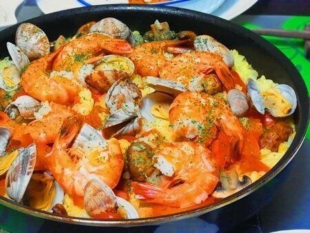 手間がかかりそうなパエリアですが、じつはひとつのフライパンで簡単に調理できます。合わせ調味料で炊いたお米と具材の旨味がマッチして、ホームパーティーでも喜ばれるメニューです。