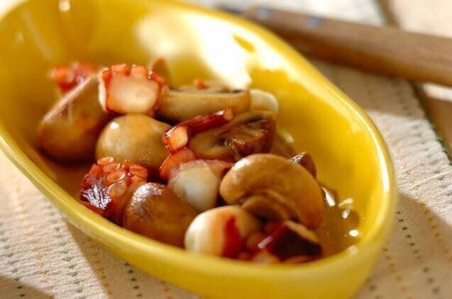 シンプルな味つけがポイントの、タコとマッシュルームのバターしょうゆ焼き。約10分で完成するお手軽レシピです。洋食の副菜や、おつまみにもよさそうですね!