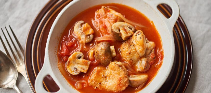 【糖質控えめレシピ】鶏肉とマッシュルームのトマト煮