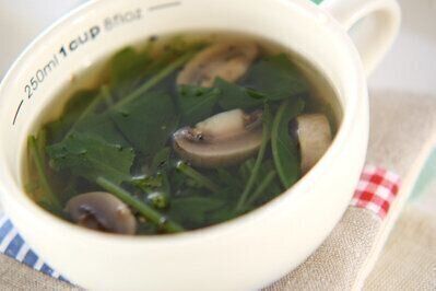 モロヘイヤのとろみと、マッシュルームの旨味を感じられそうなスープのレシピ。手軽においしく、栄養補給したいときにぴったりのメニューです。洋食メニューに添えるのもおすすめですよ。
