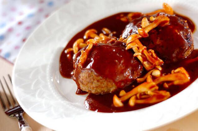 ハンバーグのタネにマッシュルームを使い、きのこソースといっしょに味わうハンバーグのレシピです。きのこをたっぷり入れて、香りや風味を楽しむのもよいですね。食べ応えもありそうです。