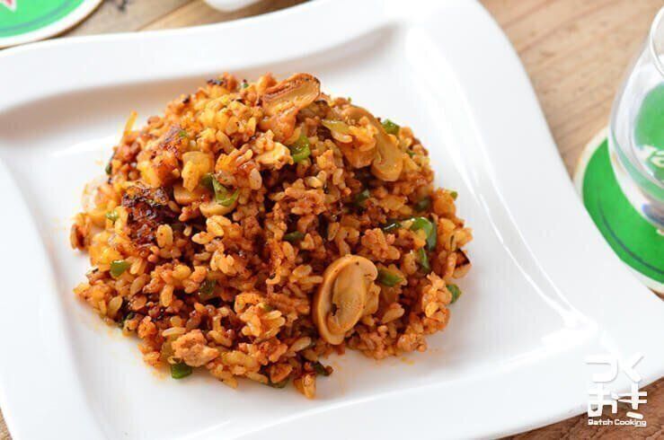 スパイスをきかせて甘辛く炒めたご飯はどんどん食べ進めたくなるお味です。お肉はお好みの種類に変えてアレンジも可能です。