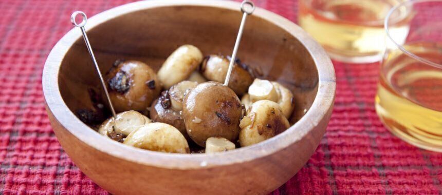 「ブラウンマッシュルームのセゴビア風」は、スペイン料理の定番。フライパンにバターとオリーブオイル、にんにくを入れて炒め合わせます。さらに白ワインを入れて完成。ワインとの相性もピッタリです!