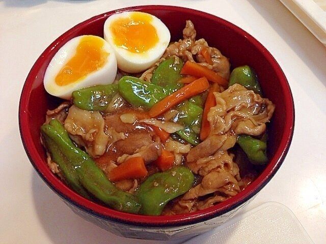 豚バラブロックを使った、食べ応えを感じる丼ものメニュー。夏のエネルギー補給にぴったりで、ボリューミーなおかずとしても◎です。ごはんのすすむ甘辛な味付けは、ほかの野菜とも相性がよさそう。