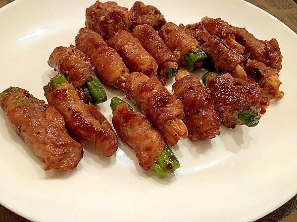 ししとうとチーズを豚薄切り肉で巻いた、主食のレシピです。プロセスチーズを縦に3等分切ったサイズが、ししとうの半分サイズとピッタリ!焼き終えてから切ると、キレイな断面ができて見栄えもいい一品です。