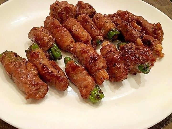 具材を豚肉でくるくる巻いた、ししとうの豚肉大葉巻きのレシピです。油は少なめで蒸し焼きにするのがポイント。好みで豚バラ以外の肉を使ってもおいしいですよ。ご飯のおともやおつまみにも◎。