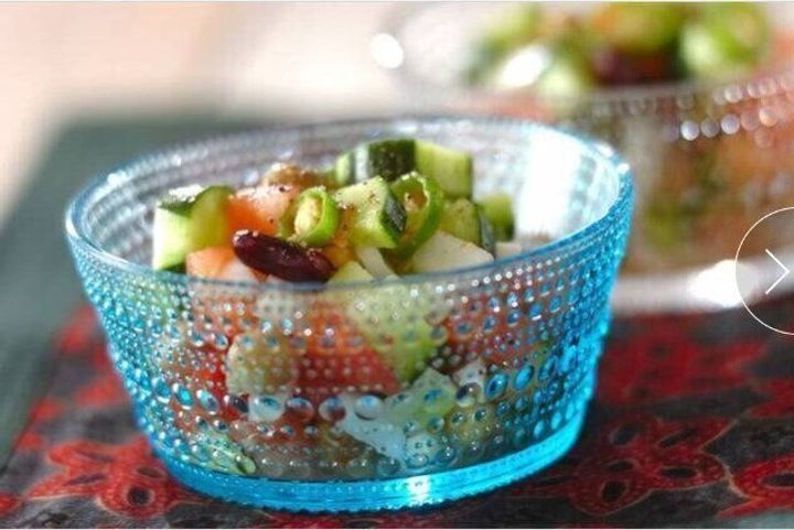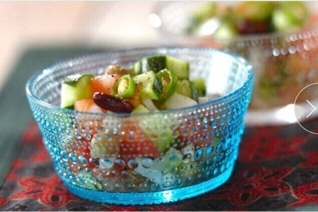 カチュンバとは、生野菜とスパイスをふんだんにつかったインド風サラダのことです。ししとうやトマト、きゅうりなどの夏野菜をたっぷりつかったカチュンバは、レモン汁を加えたさっぱりとした味つけなので、暑くてバテ気味のときにもおいしくいただけます。